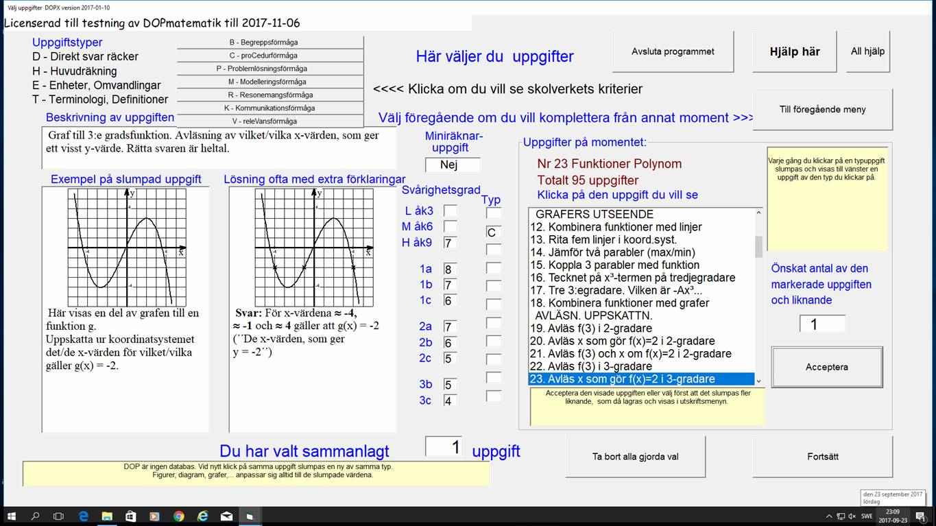 Här har jag valt momentet Polynomfunktioner och just klickat och fått en avläsningsövning slumpad